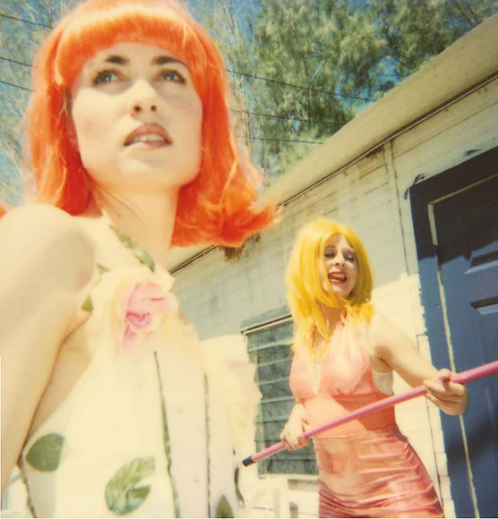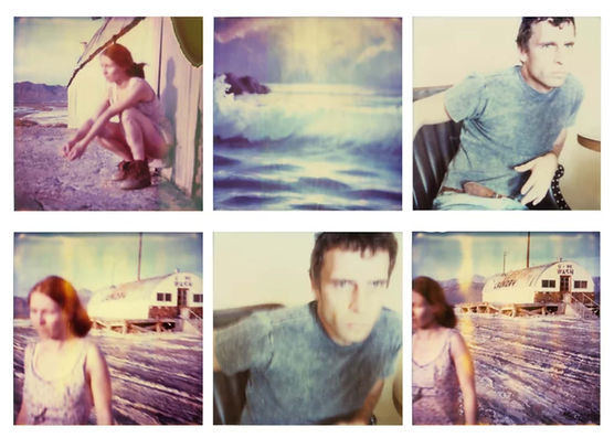 The photography contains a setting of the American West with vintage overtones containing actors dressed in attire, dated hair styles, and using props from the 1960’s. Usually set out in a Western desert or suburbia, the actors range in behavior such as frolicing, posing, waiting, in a state of worry, sexual, and even violence. Stefanie’s process pertains to using expired polaroid film, reshooting the polaroids in her studio, and then using the lab process and chemical emulsions to create a grainy and aged appearance to the photography.